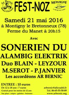 Depuis maintenant plusieurs années, notre amicale organise son traditionnel Fest-noz tous les deux ans à la Ferme du Manet à Montigny le Bretonneux. A cette occasion, l'affiche sera composée des groupes suivants :